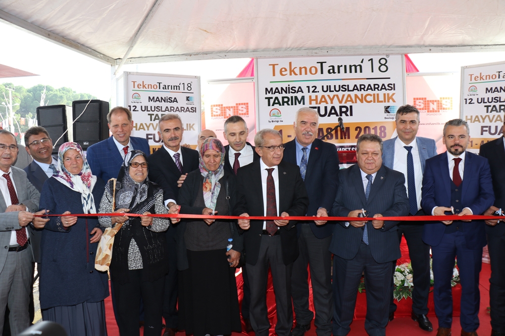 Tekno Tarım Manisa 12. Uluslararası Tarım Hayvancılık Fuarı açıldı. Fuar Merkezi'nde gerçekleştirilen resmi törende açılış kurdelesini protokolle birlikte çiftçi kadınlar kesti.
