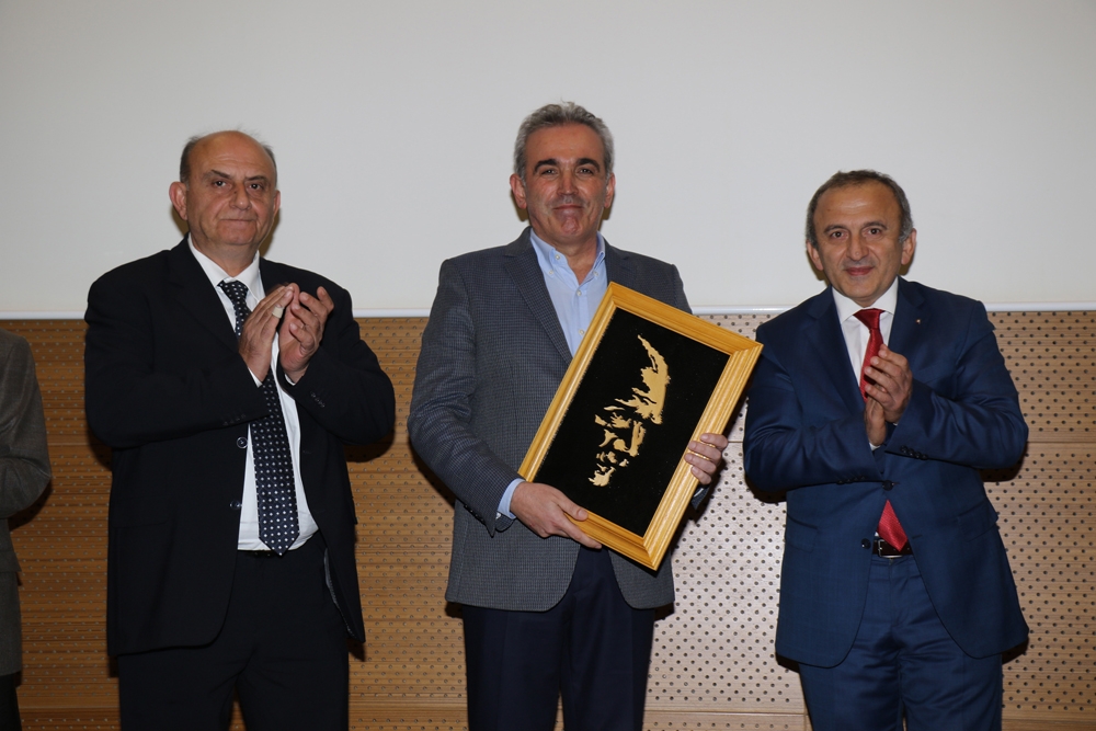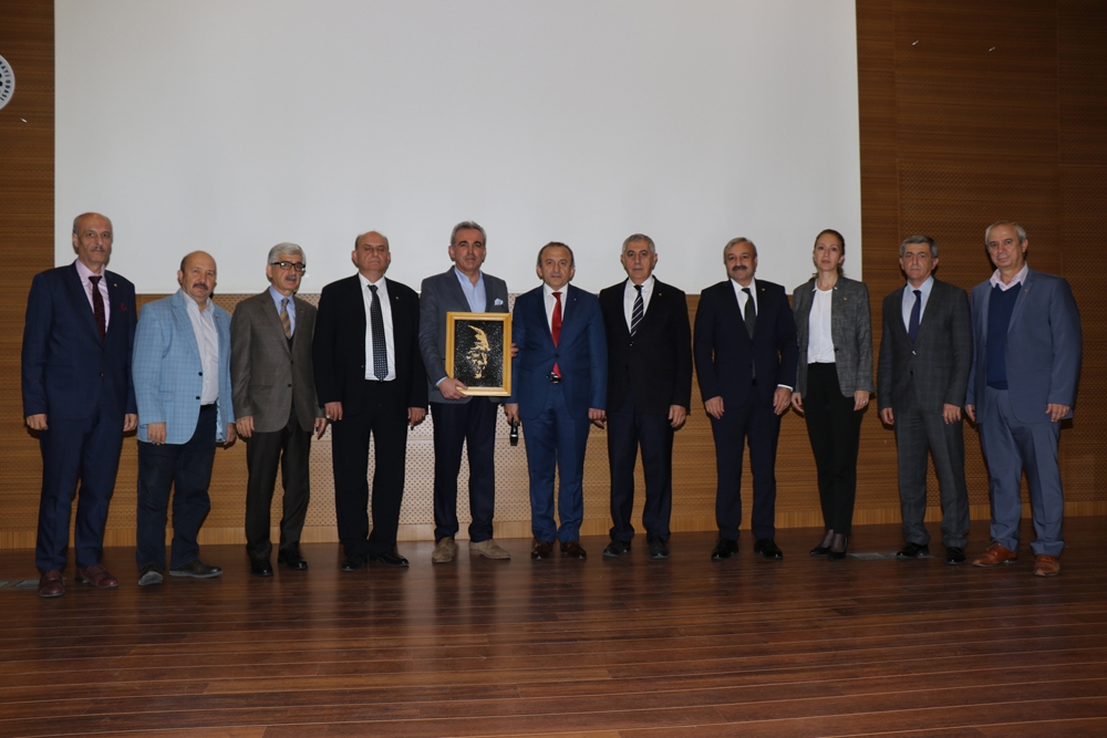 Toplantının sonunda ise Manisa Ticaret ve Sanayi Odası Yönetim Kurulu Başkanı Mehmet Yılmaz ve Manisa Ticaret ve Sanayi Odası Meclis Başkanı Ümit Türek, Manisa Ticaret Borsası Meclis Başkanı Cahit Yayman ile Manisa İli Oda ve Borsa Başkanları günün anısına Prof.Dr.Veysel Ulusoy’a Atatürk portresinin yer aldığı naht sanatı eserini hediye ettiler.