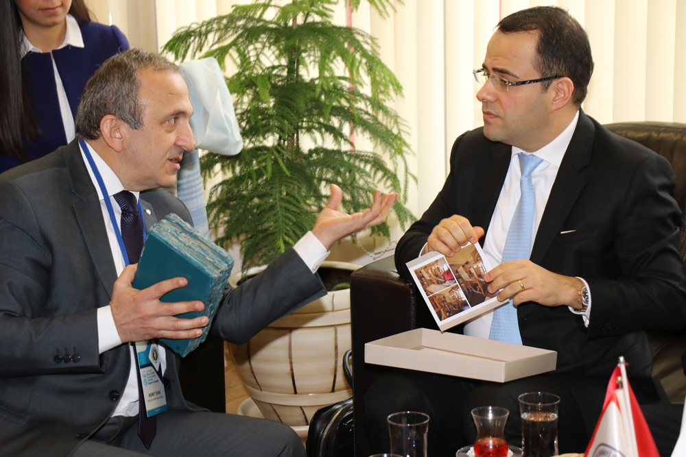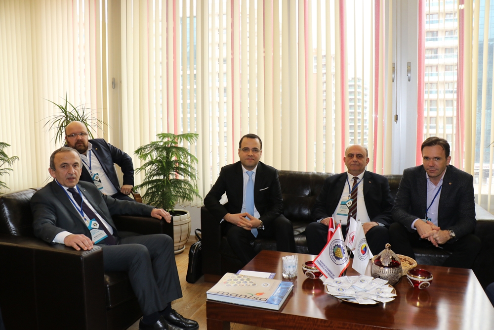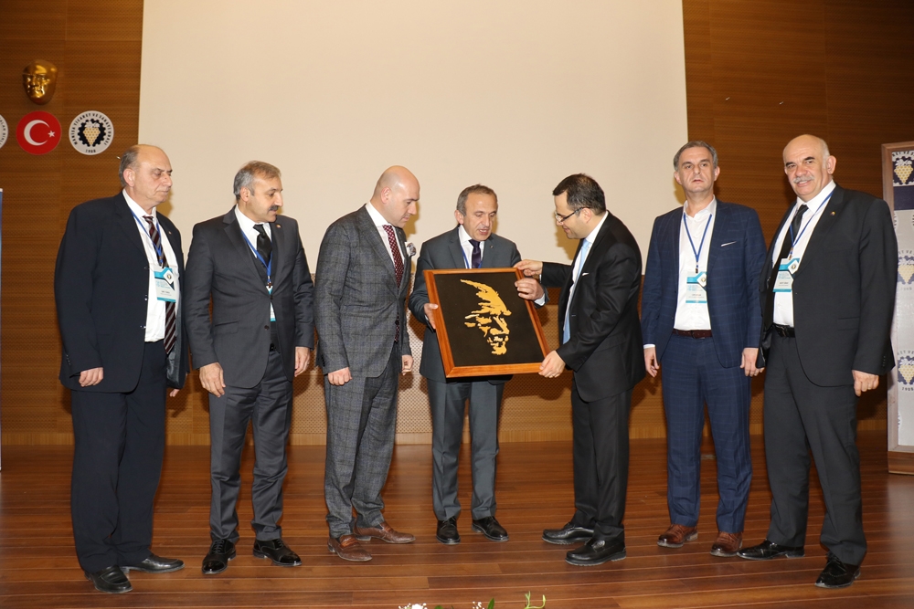Manisa Ticaret ve Sanayi Odası Yönetim Kurulu Başkanı Mehmet Yılmaz, Manisa Ticaret ve Sanayi Odası Meclis Başkanı Ümit Türek, Akhisar Ticaret ve Sanayi Odası Yönetim Kurulu Başkanı Mehmet Ulusoy, Akhisar Ticaret Borsası Başkanı Alper Alhat, Soma Ticaret ve Sanayi Odası Yönetim Kurulu Başkanı Cem Doğan, Soma Ticaret ve Sanayi Odası Meclis Başkanı Nüvit Iğnak günün anısına Sabancı Üniversitesi Finans Kürsü Başkanı Prof.Dr.Özgür Demirtaş’a Atatürk portresinin yer aldığı naht sanatı eserini hediye ettiler.