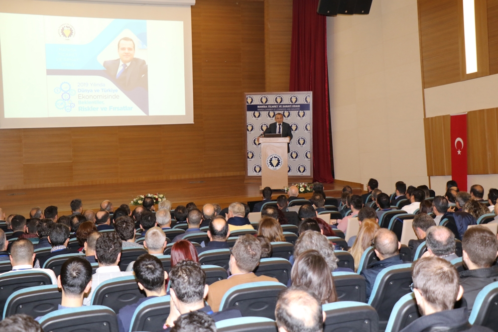 Konuşmanın ardından konferansına başlayan Sabancı Üniversitesi Finans Kürsü Başkanı Prof.Dr.Özgür Demirtaş ’‘2019 yılında Dünya ve Türkiye Ekonomisinde Beklentiler, Riskler ve Fırsalar’ konu başlığıyla gerçekleştirdiği sunumuyla, Manisa iş dünyasına Dünya ve Türkiye’deki ekonomik dengeler hakkında bilgiler vererek, ekonomik gelecek hakkında görüşlerini paylaştı. Yaklaşık iki saat süren konferansın son bölümünde ise Demirtaş, katılımcılardan gelen soruları cevaplandırdı.