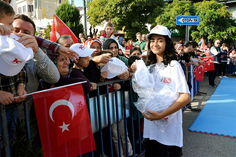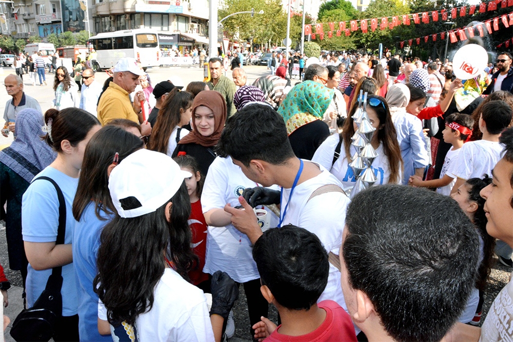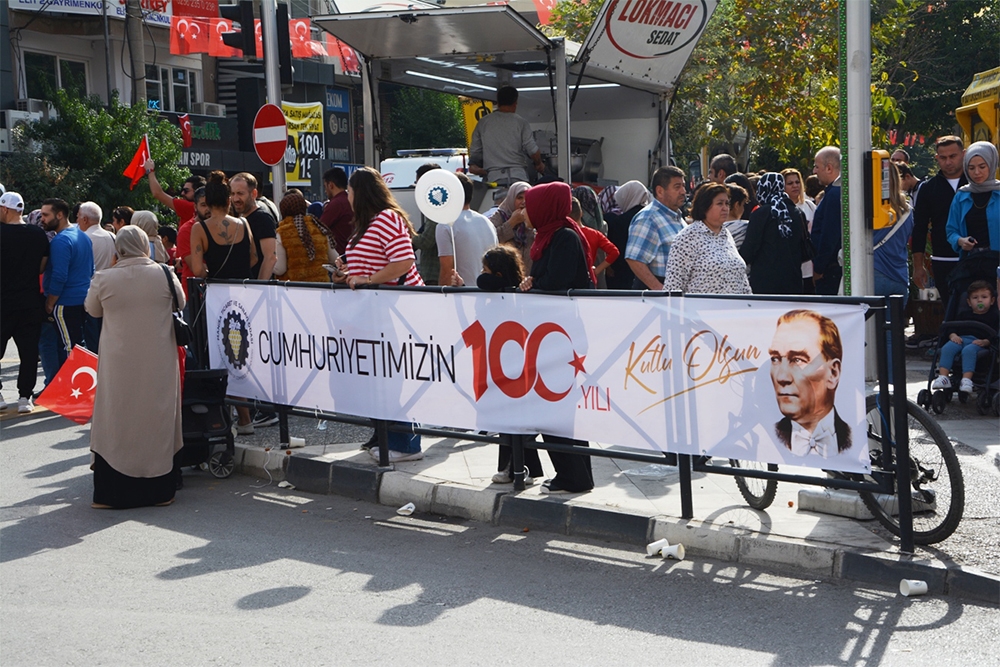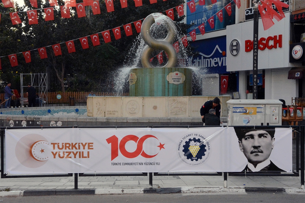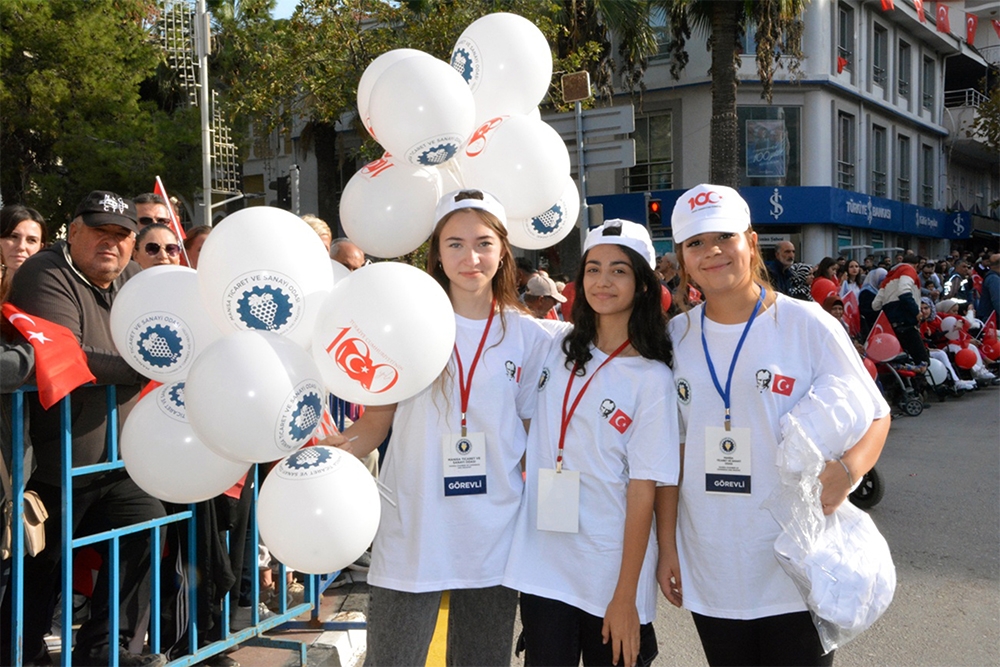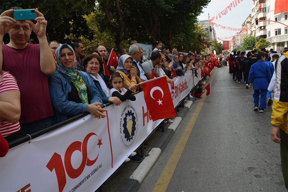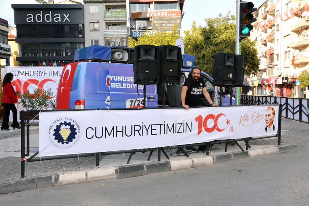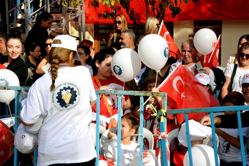 Odamız Türkiye Cumhuriyet’inin 100. Yılını büyük bir coşkuyla kutladı. Manisa TSO, 15 Temmuz Demokrasi Meydanı’nı afişlerle donattı, stant açtı. Manisa Valiliği önünde düzenlenen kutlama töreninde vatandaşlara Türk bayrağı, balon ve şapka dağıttı. Tören bittikten sonra Manolya Meydanı karşısındaki alanda 10 bin adet Türk bayrağı, 10’ar bin adet Türk bayrağı, şapka, 10 bin paket kuru üzüm, şıra dağıttı. Ulu Önder Gazi Mustafa Kemal Atatürk, silah arkadaşları ve aziz şehitler anısına lokma hayrı gerçekleşti. Yunusemre Belediye Başkanı Dr. Mehmet Çerçi de standı ziyaret etti.