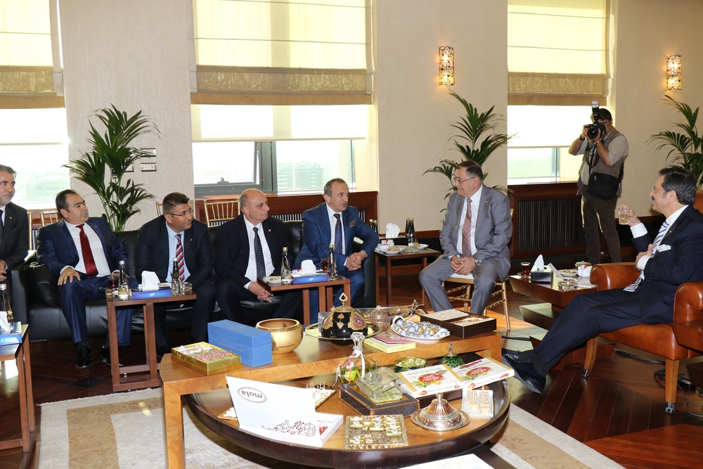 Manisa Ticaret ve Sanayi Odası (Manisa TSO) Yönetim Kurulu Başkanı Mehmet Yılmaz, Meclis Başkanı Ümit Türek, Manisa TSO Yönetim Kurulu Üyeleri ve TOBB Delegelerinden oluşan heyetle birlikte TOBB Başkanı M.Rifat Hisarcıklıoğlu’nu makamında ziyaret ettiler. Başkan Yılmaz ziyaret sırasında Manisa TSO üyelerinin nefes kredisinden daha fazla yararlanmak istedikleri talebini TOBB Başkanı Hisarcıklıoğlu’na iletti. Hisarcıklıoğlu’da Manisa İş dünyasına 15 milyonluk yeni bir kredi imkanı sağlanması talimat verdi.