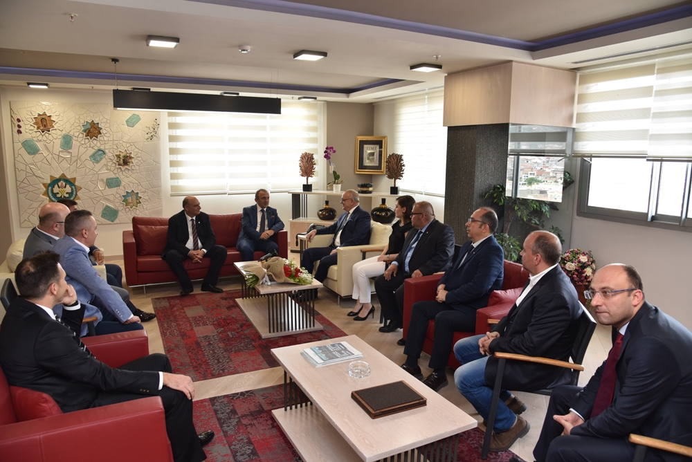 Manisa Ticaret ve Sanayi Odası (Manisa TSO) Yönetim Kurulu Başkanı Mehmet Yılmaz, Meclis Başkanı Ümit Türek ve Yönetim Kurulu Üyeleri ile birlikte, Manisa Büyükşehir Belediye Başkanı Cengiz Ergün’e makamında nezaket ziyaretinde bulundu.