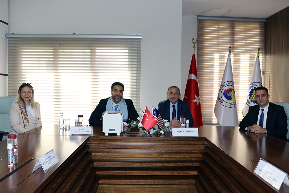 Manisa Ticaret ve Sanayi Odası (Manisa TSO), Oda Üyelerinin dış pazarlarda daha güvenli ve doğru bir şekilde yer alabilmeleri için çalışmalarına hız kesmeden devam ediyor. Göreve başladıkları günden itibaren Japonya’dan Sri Lanka’ya, Almanya’dan Rusya’ya, Macaristan’dan Özbekistan’a, Birleşik Krallıktan Kamerun’a dünyanın dört bir yanından birçok yabancı heyeti Manisa’da ağırlayan Manisa Ticaret ve Sanayi Odası Yönetim Kurulu Başkanı Mehmet Yılmaz, Amerika Birleşik Devletleri (ABD) Büyükelçiliği Ticaret Müsteşarı yetkilerini üçüncü kez makamında ağırladı.