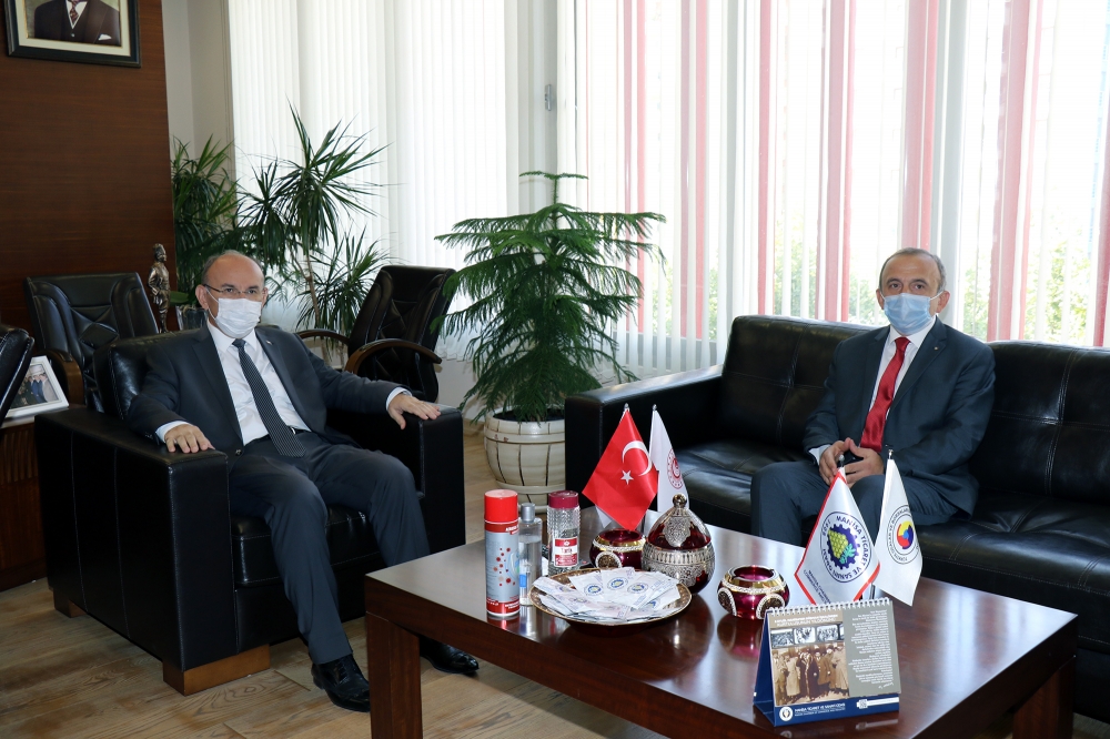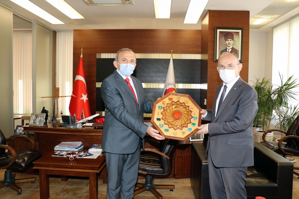 Valimiz Sayın Yaşar Karadeniz, Yönetim Kurulu Başkanımız Sayın Mehmet Yılmaz’a iade-i ziyarette bulundu. Odamız Hizmet Binası’nda gerçekleşen ziyarette Valimiz Sayın Yaşar Karadeniz, Manisa TSO’nun pandemi döneminde aldığı önlemleri yerinde inceleyip, bundan sonra yapılacak olan faaliyetler ve projeler hakkında bilgi sahibi oldu. Ziyaretin sonunda Yönetim Kurulu Başkanımız Sayın Mehmet Yılmaz ziyaretten duyduğu memnuniyeti dile getirerek Sayın Valimiz Yaşar Karadeniz'e ziyaretin anısına naht sanatı eserini hediye etti.
